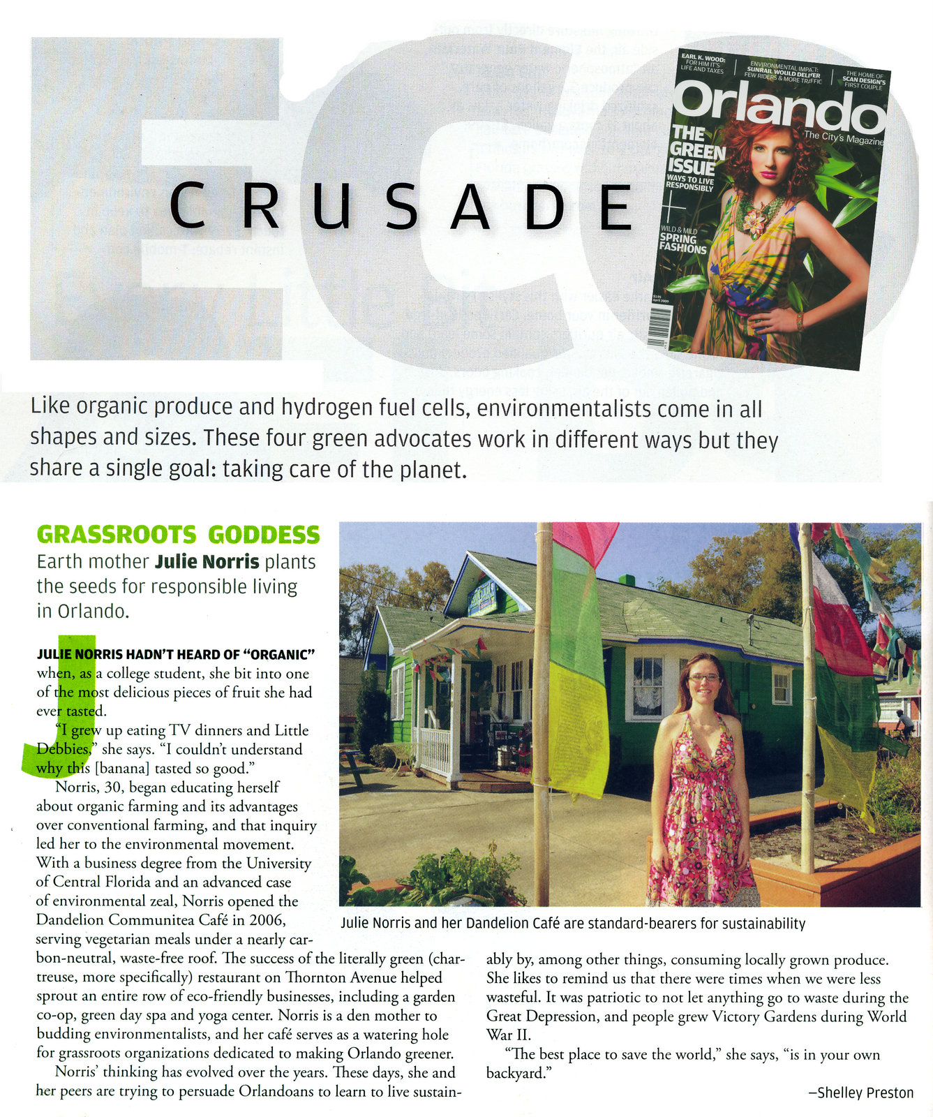 See online article here: http://www.orlandomagazine.com/Orlando-Magazine/April-2009/Eco-Crusaders/